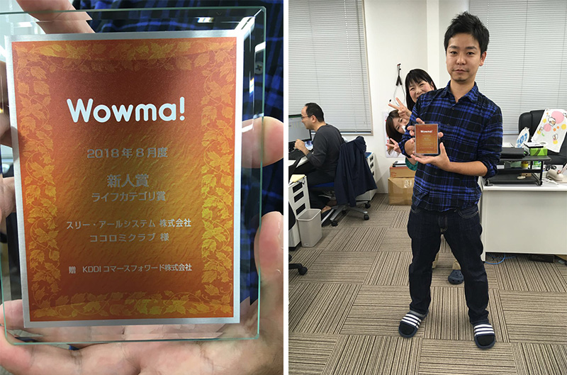 昨年10月に出店したネットショッピングモール「Wowma!(ワウマ)」(運営:KDDIコマース)にて、弊社の運営するココロミクラブが新人賞を獲得いたしました!!