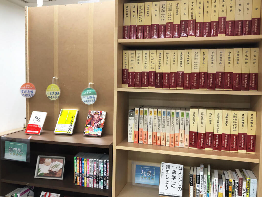 今までビジネス書や文芸書が多かった蔵書に文学書が加わって、より厚みのあるジャンル構成となっています。