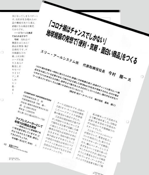 2020年9月3日発売の「I・B 企業特報 INFORMATION BANK」(発行/データ・マックス)」にスリーグループ代表取締役社長 今村陽一のインタビュー記事が掲載されました。