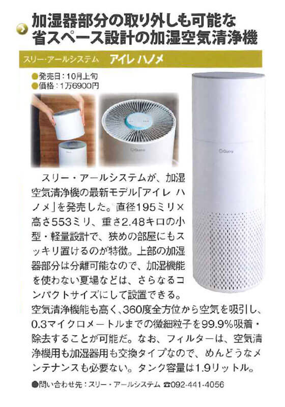 特選街に加湿空気清浄機「Qurra(クルラ)アイレハノメ」が紹介されました!