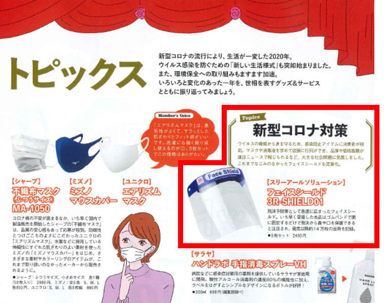 2020年12月17日発売の「オレンジページ 2021年1月2日号(発行/株式会社オレンジページ)」にスリーアールグループが企画・販売を手がける「フェイスシールド」が掲載されました。