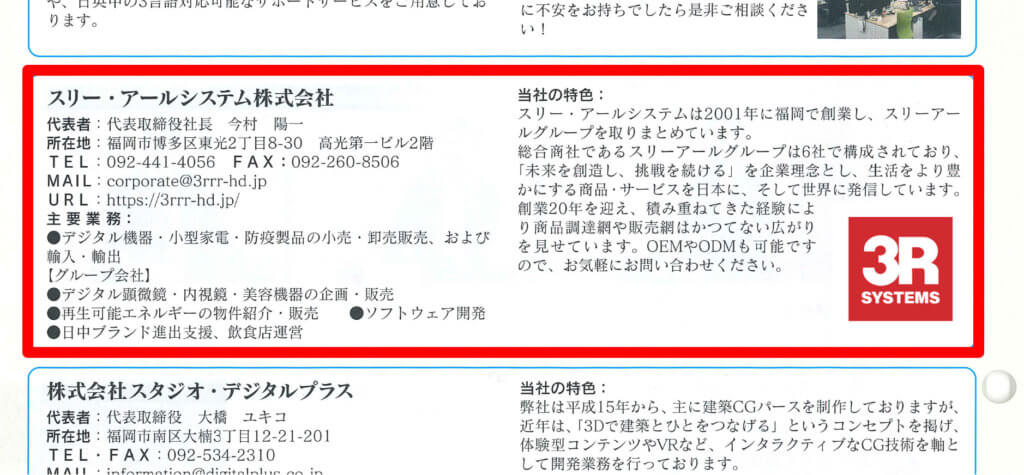 スリーアールグループは今年度より福岡貿易会(FFTA)に参画しており、新会員紹介のコーナーで取り上げていただきました。