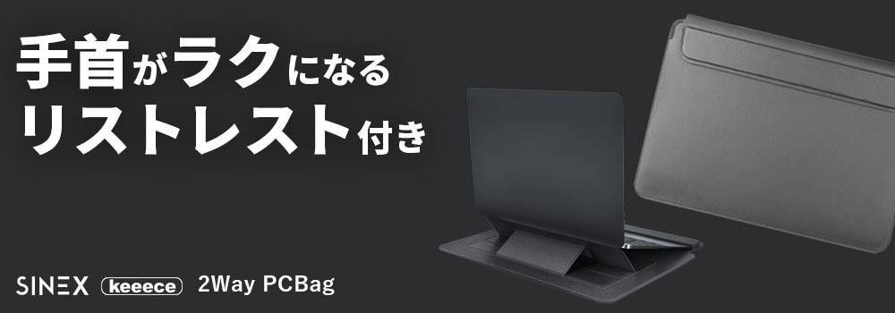 PCケースとスタンドが一体化しており、リストレスト機能も備えて3役をこなせる点に着目いただいております。